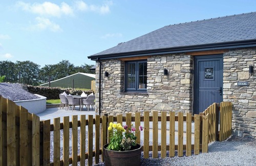 Bathroom: With bath, shower cubicle, toilet and heated towel rail.. Air source heat pump underfloor heating, electricity, bed linen, towels and Wi-Fi included. Initial logs for wood burner included. External utility room with washing machine and tumble dryer (shared with other property on-site). . Small garden with sitting-out area and garden furniture. Hot tub for 6 (private). Private parking for 3 cars. No smoking.. In glorious countryside just 8 miles from the Cardigan Heritage Coast, this charming, semi-detached barn conversion has been skilfully converted from traditional farm buildings. Set on the owner’s working sheep farm, Stabl is all on one level and offers spacious, modern, open plan living and is a perfect spot for a family holiday whatever the season. There is a cosy wood burner and even a blissful hot tub, which is great for relaxation after busy days exploring the area!
