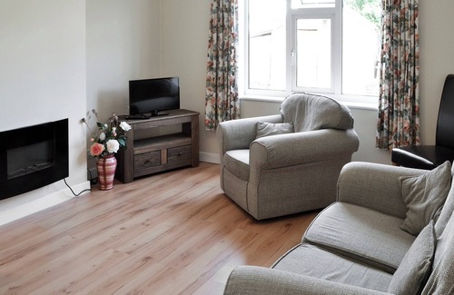 Living room: With electric fire, Freeview TV, DVD player and wooden floor.