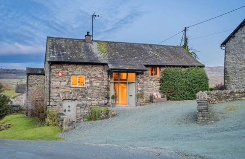 Bathroom: Slipper Bath, Cubicle Shower, Heated Towel Rail, Toilet. LPG central heating, gas, electricity, bed linen, towels and Superfast fibre Wi-Fi included. Initial logs for wood burner included. Welcome pack.. Lawned rear garden with sitting-out area and garden furniture. Private parking for 2 cars. No smoking. Please note: Sorry, no hen or stag parties. Bedroom 1 has a floor beam to step over. There is a natural water supply from a borehole. No children under 8 years. No Wi-fi.. Wicklow Barn is a stunning converted Grade II listed home situated in a beautiful setting in Cartmel Fell in the peaceful farming Winster Valley. In keeping with its historic past, the property boasts original ceiling beams throughout and a gorgeous original 15th century interior barn door feature, all stylishly blended with top of the range fixtures and fittings.