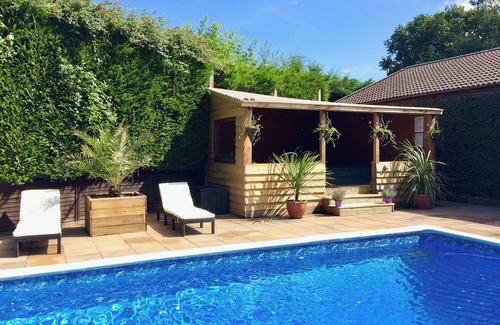 This holiday property is a well-appointed, rural semi-detached property, with its own heated swimming pool, secluded gardens and has full facilities for people with restricted mobility (except a hoist) plus induction loop, and lies in the peaceful Vale of Taunton Deane.. Ground Floor: