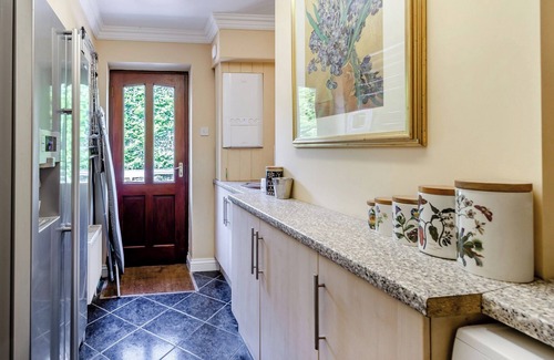 Shower Room: Cubicle Shower, Toilet. Gas central heating, electricity, bed linen, towels and Wi-Fi included. Welcome pack. . Rear garden with bar area, decked patio and garden furniture. Summerhouse with hot tub for 6 (private). Private parking for 3 cars. No smoking.. This spacious, gated property is accessed by a sweeping brick set driveway. The property is a beautiful, detached, dorma bungalow, superbly furnished with a luxurious feel. The master bedroom and en-suite are on the ground floor with tasteful decor and plenty of storage. The en-suite features a walk-in shower, large bath for a relaxing soak, twin vanity basins and toilet. The very well-equipped kitchen and dining area features stylish units and a granite topped centre island. The kitchen opens through to a lovely bright sunlounge with quality comfortable chairs and sofa and a dining table for 6. This room gives access to the beautiful, decked patio with luxury garden furniture and views to the front and rear gardens where you can sit back and enjoy the peace and quiet.