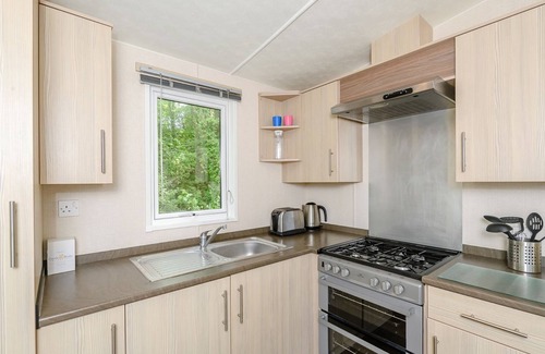 Luxurious and contemporary caravan with one master double with ensuite WC and two twin. Family shower room. Modern, high quality lounge/kitchen/dining area with door opening out onto the garden with quality furniture.. Located on idyllic Woodbury Common, only 11/2 miles from the village of Woodbury, this friendly, family run park sits just a short drive from Exmouth, Budleigh Salterton, Exeter and Sidmouth.