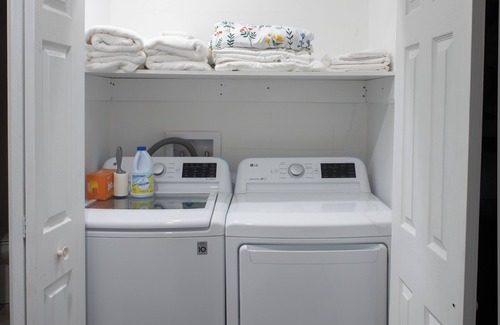 While you're here, you can enjoy all the comforts of home and more, including a jetted bathtub and free WiFi, as well as a bidet and air conditioning. Other amenities include laundry facilities, towels, an ironing board, and soap.