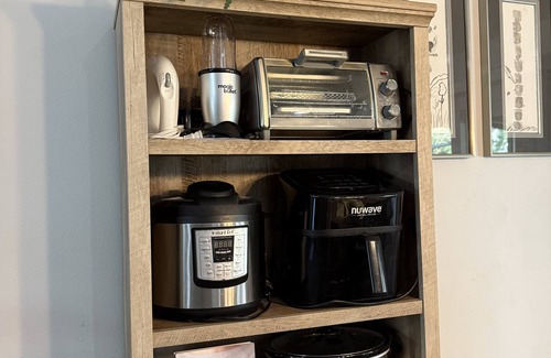 Consider this house your home away from home while you visit Twin Falls. This cool property boasts 3 bedrooms - one with a king bed, two with queen beds, and a fun bunk bed for the kids. With 2 soothing bathrooms featuring a bathtub and shower, guests can relax and unwind after a day of exploring. The living room offers an awesome space to kick back on the sofa bed. Our place is equipped for both long or short stays to make your holiday one to remember. This vacation house has an amazing outdoor space with a fully covered patio, 2 grills, furniture, fire pit, and outdoor dining , plus a large fenced back yard for activities.