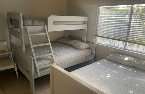 This 3-bedroom house is perfect for your escape to Rosarito. With 1 king bed, 1 bunk bed, 1 twin bed, and 1 queen bed, this amazing property can comfortably accommodate you and your guests. The 3 bathrooms are equipped with showers for your convenience. Imagine waking up in this pleasant retreat, surrounded by soothing vibes. A great place to call homebase while you're away, we hope you enjoy your stay. Steps from the Beach.