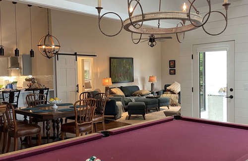 newly renovated 3 Bedroom + Kids Loft Home on a quiet Turtle Cove at Lake Greenwood. Nicely appointed with all the toys including 2 firepits, hot tub, dock, swimming area, pool table, ping-pong table, gas grill, & indoor gas fireplace with a sky light. Room length folding doors easily open to connect the inside rooms to the large screen porch. Porch has large screen TV, Custom Live Edge Bar, Full Refrigerator, Wet Sink and Live Edge Dining Table. Beautiful sunrises greet you as the sun glitters on the water over the lake. Watch the fish jump and the eagles soar as you enjoy serene lake views from virtually every room. Fish, Swim, Paddle Boat or just Relax at Porch-U-Pine. The house is fully stocked everything you need to have a relaxing family stay. Note: This has always been our family vacation home, the kids chose the name Porch-U-Pine because the house has many porches and is surrounded by stately long tall pines. You're invited to bring your family to our family home and create your own lasting memories. If your family would like a little more space, consider also renting our one bedroom property just next door on VRBO #2763484 - House Name "Point House"