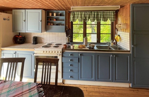 Far away from everyday life and surrounded by lush greenery, this enchanting holiday home welcomes you and offers you a peaceful retreat for relaxing days in harmony with nature. Let the view of the garden inspire you when cooking and look forward to cosy game evenings and relaxing reading hours in the lovingly furnished living room, while the Norwegian wood-burning stove provides cosy warmth.