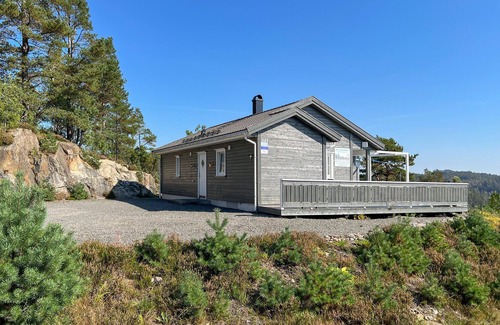 Your dream holiday home, located just north of Lyngdal, awaits you on a rocky outcrop with a breathtaking view of the enchanting lake nearby. Enjoy the day on the spacious terrace, which offers a sweeping view of the surrounding hills and the glistening water. Let yourself be enchanted by the tranquillity and unspoilt nature as you relax outdoors or enjoy meals together al fresco on the terrace.