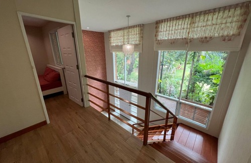 Escape to a quiet townhome in Bangkok with three cozy bedrooms. This property offers shared fitness space, shared pools, a shared kids' room, WiFi, a washing machine, and AC for your convenience. We hope you'll enjoy your stay at our townhome.