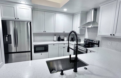 Unwind with your loved ones in this tranquil, secure, and fully remodeled modern-style townhome. Located just a 5-minute walk from Starbucks, taco spots, restaurants, walking trails, and shopping/grocery stores, this home offers both convenience and comfort. It comes fully furnished, featuring 3 bedrooms, 2.5 bathrooms, and a fully stocked kitchen. A pack-and-play crib, stroller, and highchair are available for your convenience. Enjoy family BBQs in the small, gated backyard.