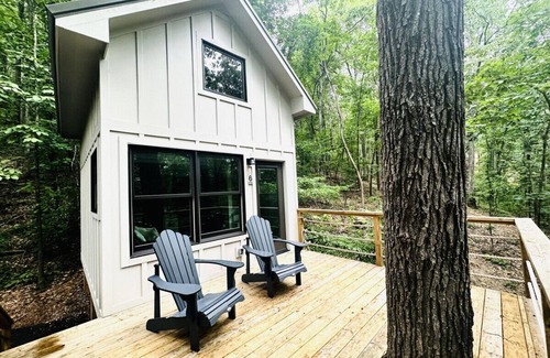 Set on 40 acres near Lake Guntersville, ReTreet is situated on a heavily forested hillside with beautiful foliage, water features and more. Redbud Gorge separates the treehouses from the Glamping Tents&Tiny Cottages setting the tone for a truly enchanting atmosphere immersed in nature. This is a unique vacation experience fit for couples, families, and everything in between.