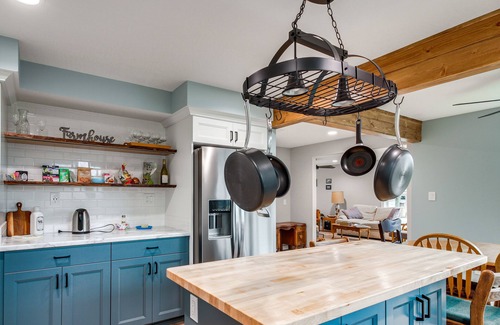 HOME HIGHLIGHTS: New interior, towel warmer, wood & electric fireplaces, 2 living rooms, Smart TVs, cable, DVD player, dining area, ceiling fans, front porch