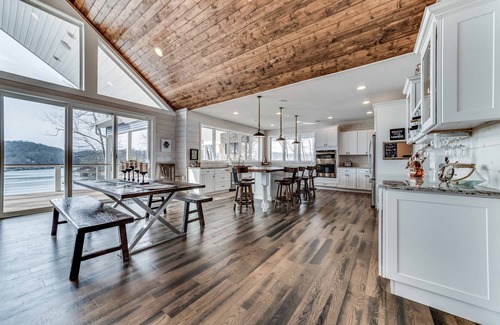 Exclusive waterfront property with private double two-story dock and HOT TUB which overlooks the lake. Located on Big Creek less than 14 miles off of I-75. This 3,500 sq ft home features breath taking views with over 3,200 feet of outdoor covered decks with built in gas fireplace and outdoor ping pong table, cornhole & 2 hammocks. The panoramic views include both beautiful sunrises and breathtaking sunsets. Property details and amenities are designed for the discriminating renter looking for first class accommodations. Highlights include: