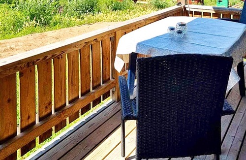Layout: Living room(single bed, double folding bed, TV(swedish TV channels), cooker(2 ring stoves), coffee machine, oven, microwave, fridge(+ freezer)), bathroom(washbasin, shower, toilet), balcony, balcony or terrace, heating(electric), garden furniture, parking