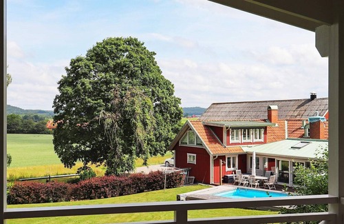 A nice cottage on the owner's plot right on the outskirts of the small community Slöinge. The cottage is located high with a lovely view of the open landscape. In summer you have access to the owner's heated outdoor pool and outdoor kitchen with barbecue area. Appointments are booked directly with the owner. A perfect accommodation for the small family or a couple. The cottage has an entrance from the covered terrace. The living room with open kitchenette also has a sofa bed. There is a TV with basic offerings, chromecast and free wifi. The bedroom has two single beds and the bathroom is fully tiled with shower. From the covered terrace you enjoy both breakfast and wonderful evenings with a fantastic view of the open agricultural landscape. At the owner's house there is an outdoor pool that you can book directly with the owner on site during the summer months. The owner also lets you enjoy their herb and vegetable land. In the nearby town of Slöinge there is a well-known bakery and café, an ice cream factory with serving and a temple with outdoor seating. Within walking distance of your holiday home there is a farm shop with meat delicacies etc. If you want to go to the sea, Ugglarp's lovely beach is the closest. A short drive takes you to Falkenberg's cozy summer town. Here are many nice little cafes, restaurants and shops. The large sandy beach at Skrea, is quickly filled with bathers in the summer. There are several golf courses nearby. The closest is Falkenberg's nice golf club. For those who are interested in fishing, there is the opportunity both in Suseån, in Ätran and in the sea. Fishing license required in Ätran and Suseån.