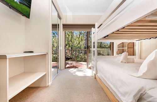 The unit can sleep up to six, with a super king in the master and a set of queen bunks in the second bedroom.