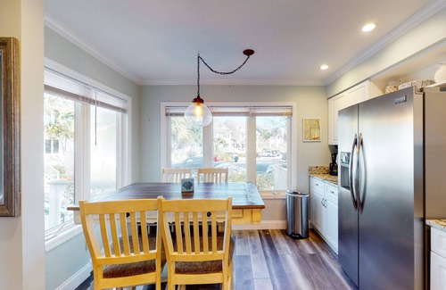 Find an incredibly serene, marshfront setting at this two-bedroom condo on Johns Island, a beautifully updated retreat that sits within a short drive of historic downtown Charleston. You'll enjoy the best of both worlds here, with two back porches overlooking the tranquil Stono River marshlands where you can sip your morning coffee, observe nesting birds, and sit down with a glass of wine or sweet tea at golden hour each evening. The 1,300-square-foot living space is spread out across two floors, offering elegant furnishings, a gas fireplace with a large flatscreen TV mounted on the wall above, and a fully appointed kitchen with stainless steel appliances. Come home from your morning excursions to toss the day's clothes in the washing machine, grab a fresh swimsuit from the dryer, and stroll over to the community pool to enjoy a gorgeous afternoon in the sunshine.