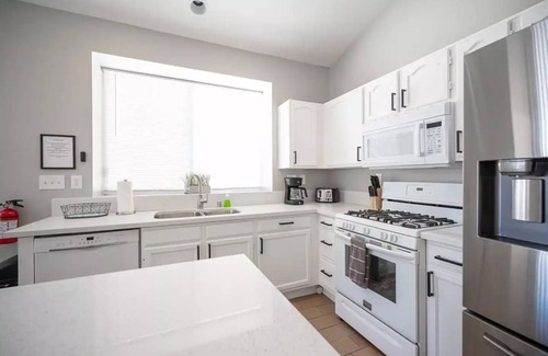 Discover the perfect place for your Vegas adventure! Located just 10 minutes from the airport and the Strip, our house is surrounded by restaurants, coffee shops, and grocery stores. Nature lovers can enjoy Corner Stone Park's 10-acre lake and trails, just a short walk away. And for those feeling lucky, Green Valley Ranch Casino is less than 3 miles away. Experience a 10+ stay in our lovely house!
