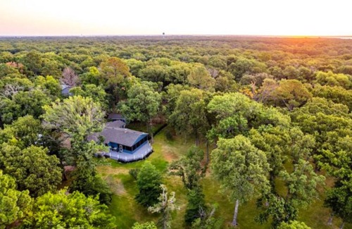 Lakeside Secret Garden is a serene lakefront escape in West Tawakoni, TX, set on nearly three acres of peaceful, tree-lined landscape with sweeping water views. Start your mornings with coffee on the deck as deer quietly wander past, then spend your day soaking up the outdoors—swimming from the private sandy beach, launching from the dock, or unwinding in the built-in hot tub. When the sun sets, gather around the fire pit beneath the twinkle of string lights or relax on the screened-in porch with a good game or meal.