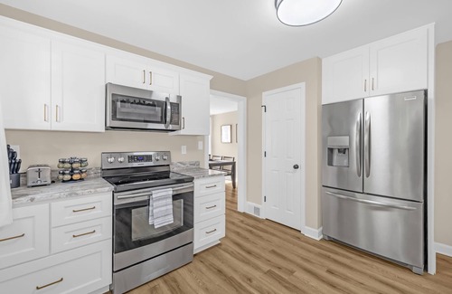 Relax in this stylish 3BR retreat on Elam Ave—ideal for business trips or extended stays. Located just minutes from Downtown Greensboro, UNCG, and local hospitals. Enjoy fast Wi-Fi, smart TVs, a fully equipped kitchen, and in-unit laundry. Peaceful, clean, and close to dining, shops, and parks. Whether you're here for meetings or a quiet getaway, this home offers the perfect mix of comfort and convenience.