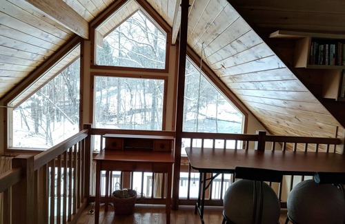 3BR Riverfront Log Home with Steam Sauna, Soaring Glass Wall & Private Forest is located in Cummington. 3BR Riverfront Log Home with Steam Sauna, Soaring Glass Wall & Private Forest provides accommodation, featuring Air Conditioner, Balcony/Terrace, Bedding/Linens, among other amenities. This House features Air Conditioner, Balcony/Terrace, Bedding/Linens, to make your stay a comfortable one.