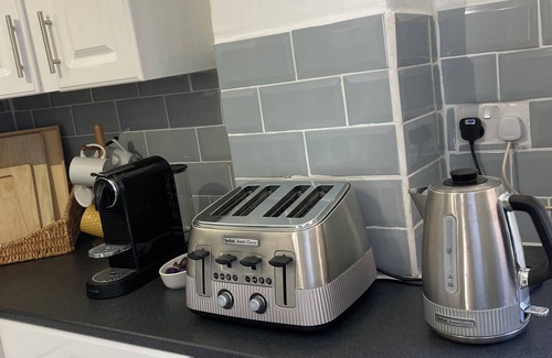 The kitchen includes a fridge/freezer, dishwasher, electric hob and oven, a combined washing machine/dryer, electric kettle, Nespresso machine and a toaster. All cutlery, crockery, utensils, glassware, etc, are provided including pans and oven-ware.