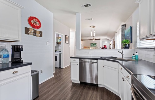 Rustic Retreat Denton is a cozy one-story home w/a peaceful fenced backyard offering a nice pergola. Fully equipped kitchen to start your day w/healthy breakfast; SS kitchen appliances. Beautyrest plush mattress in master; Sealy in other bedrooms. All queens to offer you a comfortable night rest w/room darkening curtains; TV's in ea. room. Plush bath towels. Fiber Internet; large workdesk. 2-Car Garage w/long driveway. 1 mile to Medical City Denton/Loop 288 Town Shopping Center. Close to UNT.