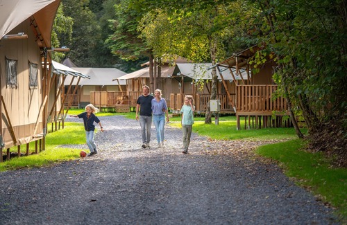 Set on the upper course of the Vierre river, in the middle of the forest, this charming luxury glamping in the Ardennes offers plenty of peaceful nature. Let the sun warm your face as you relax with a book on the veranda of your safari tent. In the background you hear the babbling brook while the children have fun on the trampolines at the park.