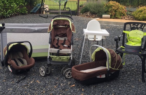 We have a variety of items available for use by baby/infant guests:- buggy with carry cot and carry chair attachments, travel cot (with bedding), high chair, baby bath and changing mat (photo).