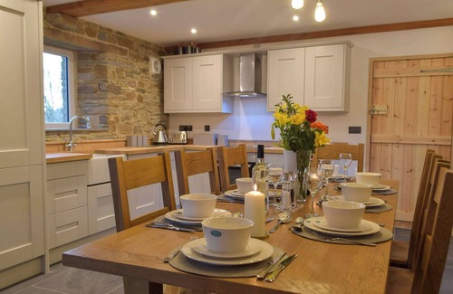 Enjoy waking up from the master bedroom with a coffee and sitting on the balcony whilst listening to bird song and taking in these sublime views. After a busy day, soak in the free standing bath at the bottom of your bed. Each bedroom has been lovingly furnished to a high standard and all boast their own en-suite bathrooms. On the ground floor the large open plan living space offers an amazing place to socialize. The cosy living area includes a focal wood burner and the original horse feeder, leading onto the large sunroom with French doors leading out onto the patio area where you can enjoy dining al-fresco with a barbecue or watch the kids play. The kitchen/dining area provides a fantastic space for formal dining with a well-equipped contemporary style kitchen.