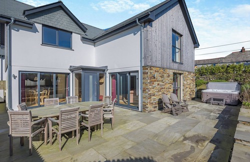 Bathroom: Bath, Cubicle Shower, Heated Towel Rail, Toilet. Electric central heating, underfloor heating, electricity, bed linen, towels and Wi-Fi included. Travel cot and highchair. Welcome pack. Front garden with patio, garden furniture and barbecue. Hot tub for 4 (private). Electric car charging point. Private parking for 2 cars. No smoking.. Nestled within the beauty of North Cornwall’s stunning landscapes, this exquisite home has been crafted to the highest standard, blending timeless elegance with modern comforts. Every detail has been carefully considered, creating a luxurious and welcoming retreat that promises relaxation and indulgence.
