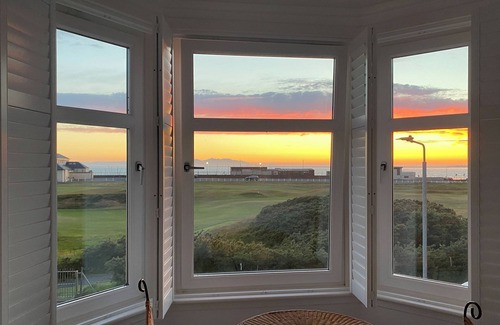 Bathroom: Slipper Bath, Shower, Heated Towel Rail, Toilet. Gas central heating, electricity, bed linen, towels and Wi-Fi included. Travel cot and highchair available on request. Initial logs and coal for multi-fuel stove provided. Welcome pack.. Enclosed, lawned garden with sitting-out area and garden furniture. Private parking for 2 cars. No smoking.. Helena is quite simply beautiful! Extended and refurbished in 2021, Helena enjoys an enviable position overlooking St Nicholas Golf Course with sea views beyond over Prestwick’s picturesque coastline; A golfer’s paradise no less.