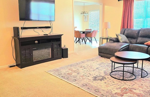 Escape to this amazing 4-bedroom house in Warrenville. With 2 king beds and 2 queen beds, guests will have plenty of space to relax and unwind. Enjoy the convenience of AC, WiFi, heating, an iron, and a washing machine during your stay. We're happy to assist with any questions while you stay at our house.