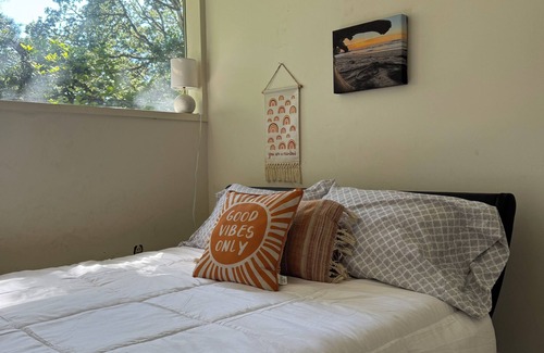 Peaceful hidden acreage close to campus in South Eugene. Mid century modern layout and furnishings. Plenty of space in & out for groups to enjoy. This property is available for day use - it is a great spot with lots of outdoor space. Send a message to inquire for details.