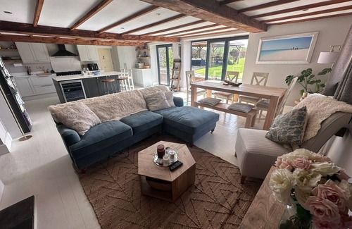 Escape to the tranquility of the countryside in our charming limestone house, nestled in a classic Buckinghamshire village. With modern airy view-filled rooms with exposed limestone walls and 300-year old wood beams, the house offers a cozy ambiance perfect for family relaxation. Whether it’s sipping morning coffee at the farm-style kitchen island enjoying panoramic views through the bi-folds, or BBQ and drinks around the fire pit in the oak gazebo with family and friends, this 4-bed residence is ideal for a rural stay. The house contains everything you need for a retreat in a countryside village, but with 5-minute access to the beautiful market town of Olney and close to amenities of Milton Keynes, Bedford and Northampton. The house can comfortably sleep 7 and has two rooms suitable for children with a fun loft style double bed and football theme and the other with an optional trundle bed. The master has a modern ensuite and overlooks the large garden backing into fields, and the self contained downstairs annex has double expect entrances from the drive and sleeps two in privacy.