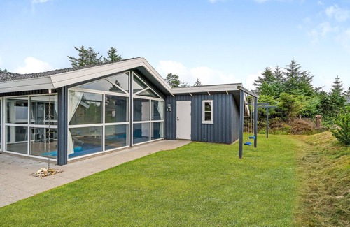 Surrounded by forest, heath and dunes lies the cozy fishing village of Torup, not far from the enormous dune of Bulbjerg. In this location, the cottage is an excellent base for a tranquil vacation, quietly situated at the end of a cul-de-sac. The nice living room is open to the kitchen and dining area, from where you can watch the children having fun in the pool with the water slide and the children's pool. There is also a kiddie pool for small children. The pool is heated by an air-source heat pump. Relaxing is the name of the game on the terrace, or would you prefer a match of pétanque?