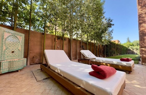 Enjoy a peaceful stay at this 4-bedroom villa in Marrakesh. The lovely property features 3 full beds and 1 twin bed, perfect for a group of guests looking for a wonderful retreat. With amenities like a hairdryer, AC, and iron, your stay will be enjoyable and stress-free. Kickback, relax, and enjoy everything Marrakesh and our villa has to offer.