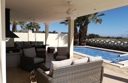 Large 4 bedroom villa with private, heated pool and jacuzzi, whole house water filtration system and air conditioning. The villa also has high speed wi-fi together with international TV, movie channels and sport. It also benefits from parking for 2 vehicles. Situated on Altaona Golf, it is a 20 minute drive from the beautiful cities of Murcia and Cartegena and 20 minutes to the wonderful beaches of the Mar Menor. Nearest airports are Murcia International (8 minutes) Alicante (45 minutes)