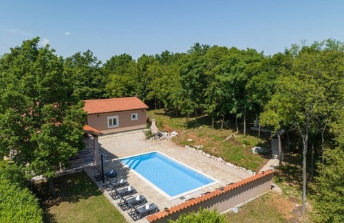 Brnjci little village of only 50 inhabitants. There is situated Villa St. Nikola , holiday Four Star villa which is not just another villa in a series of Istrian villas . Located on one of the most interesting locations in eastern Istria.Located only 10 km from the sea, Villa St. Nikola from every corner has unforgettable view of the forest and green area around her , also because of villas distance from the city , noise and lighting , smooth you can enjoy the sky full of stars and chirping crickets concert .Villa St. Nikola is an ideal vacation spot for those looking for a real relaxing holiday far away from the mass tourism . The villa comprises of 4 furnished and individually decorated rooms, and a lot of outdoor space even 10 000 m2 makes it ideal vacation spot for nature lovers.Picturesque environment of the villa , to wake up with a unique view of the hills surrounded by green area , absolute isolation and the rest from the city bustle , and the special attention we pay to the needs of our guests , certainly guarantee a pleasant and unforgettable holiday.Villa St. Nikola is situated in Županici (near Rabac), 29 km from Opatija. The property is 35 km from Rovinj and free private parking is provided.The kitchen is fitted with an oven. A TV with cable channels, as well as a CD player are offered. Other facilities at Holiday Home St. Nikola include a outdoor pool, outdoor kitchen.Dining room is particularly interesting. In the room dominated a large fireplace and wine presented with a large selection of quality Istrian wines. They also have satellite TV, WiFi Internet access What makes this property special is its truly amazing location. The house belongs to a huge plot of 9. 400 m2 fully preserved nature, with all kinds of Mediterranean Villa with pool for 8-10 persons is situated in village of Županici, 29 km from Opatija. The property is 35 km from Rovinj and free private parking is provided.The house consists of two double bedrooms with private bathrooms, a living room with a sofa bed to accommodate two more persons, kitchen and dining room. The kitchen has a microwave, refrigerator, coffee maker and kettle.
