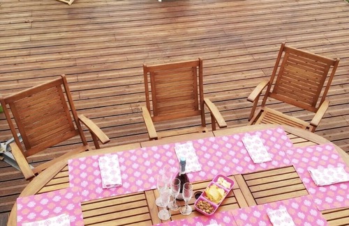 In the gîte you’ll find a huge living/dining room, 4 spacious bedrooms, 2 recently renovated bathrooms, 2WCs, a conservatory overlooking the fields and a recently renovated fully fitted and equipped kitchen. The house is decorated with many items from our expatriations abroad.