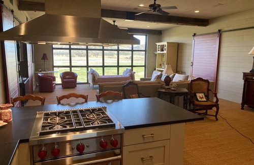 Wake up to rays of sunshine through a wall of windows overlooking the expansive Valley at Dream Ranch. Enjoy this retreat from reality by cooking in your upscale kitchen and loft space with a separate bedroom or simply enjoying a good book in front of windows overlooking a magnificent view. The Red Barn is a staple at Dream Ranch and the Loft inside is a perfectly suited vacation or staycation for any occasion.