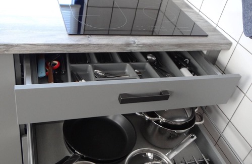 In December 2018 a new kitchen was installed with a dishwasher and an induction hob. A coffee maker, Senseo, fridge with freezer compartment, microwave and oven are also available.