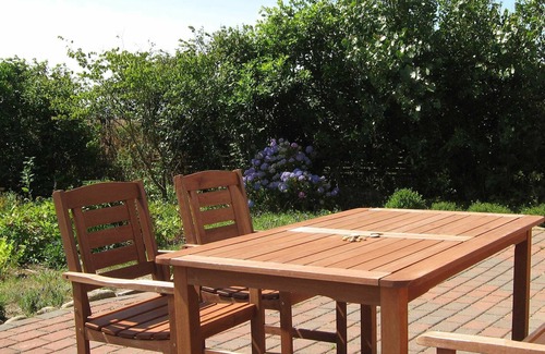 Layout: open kitchen(cooker(electric), hood, microwave, fridge(+ freezer)), Living/bed room(40 m2)(TV(satellite, german television channels, danish TV channels (DR1 and TV2)), radio, CD player), bedroom(10 m2)(double bed), bedroom(2x single folding bed), bathroom(floor heating)(bathtub or shower, washbasin, toilet), bathroom(bathtub or shower, washbasin, toilet), heating(electric), terrace(20 m2), BBQ