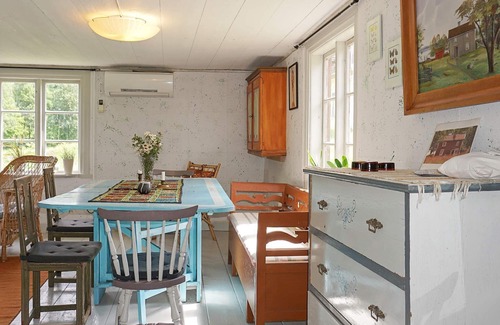 Completely newly renovated, fresh 18th century croft with lake plot where both wood-fired sauna and rowing boat are included. Here you really get to experience the lake up close and you have a boathouse with a wood-fired sauna with windows where the view of Hästsjön with its water lilies is amazingly beautiful. You also have a rowing boat that you can row out with. Why not row out to Solberga bathing place where there is a nice shallow sandy beach. You can also pre-book a boat engine (electric motor) if desired. Hästsjön is a good fishing lake. You can buy the fishing licenses on www.ifiske.se. During august it is allowed to fish Between 9am to 4pm. Fridge/Freezer is in the house. Crayfish fishing is also offered for a fee in August, if interested contact the Service Office to get in touch with the landlord. The croft has a nice view of the lake, especially from the newly renovated kitchen where you can really enjoy when you prepare your food. In the spacious combined living / dining room you can enjoy in front of the wood burning stove. A slightly steeper staircase leads up to the second floor where you have 2 bedrooms, with 4 beds. The croft also has air conditioning for cooling off if desired. Fresh combustion toilet, shower and washbasin are in the outbuilding, this buildning is not isolated and is about 30meters away from the hoiuse. Here, too, there are windows so as not to miss the view of the lake. There is hot water in the outbuilding, but not in the kitchen. You have fantastic scenic surroundings you can explore. The Höglandsleden is for those who want to move. Here you have the proximity to Nässjö, Jönköping and Eksjö for day trips / restaurant visits etc. if desired. Includes 100L of firewood, in addition to that you can buy more on site.