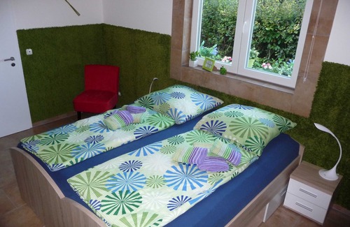 - NO card payment, only cash on arrival or by bank transfer before arrival. - Please discuss arrival time with host one day before arrival. - Deposit within 7 days please transfer- Deposit within 7 days please transfer- Apartment for up to 8 people: 4 bedrooms (15sqm), each with its own shower / WC-bathroom (4 shower / WC-bathrooms, each about 3 , 5qm), in each room TV and WLAN, 1 very well equipped kitchen (washing machine, dryer, oven, microwave, dishwasher, toaster, kettle, coffee machine), seating in front of the door, no smoking, covered smoking area. Quiet location, residential area, parking, barbecue, host lives for questions and requests in the area, spa massages can be booked