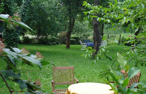 The FH is quietly located in the old village, but the street is remote part of the garden of the former farmstead on a 10 000 square meters of land. In the garden you will find old apple trees, interesting plants and in a traditional country style landscaped garden organically farmed vegetables. There you can also list reap fresh spices for your needs. Behind the orchard feed my happy, colorful birds flock and the cows and calves of the neighbors. Breakfast eggs from my chickens, there are eco-free and apples, of course. On the Grunstück is also located a dismantled old stone barn, where I live.