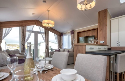 Perfect for family holidays, close to the beach and with harbour views, this modern and well-equipped lodge is located on the Gimblet Rock Carvan Park in Pwllheli. With an indoor pool, sauna, gymansium, bar, cafe and outdoor play area on site there is enough to keep all the family entertained. For those looking to explore head into the tradtional market town of Pwllheli, the bustling seaside villages of Abersoch, Nefyn and Aberdaron or the many sandy beaches and craggy coves of the Llyn Peninsula.