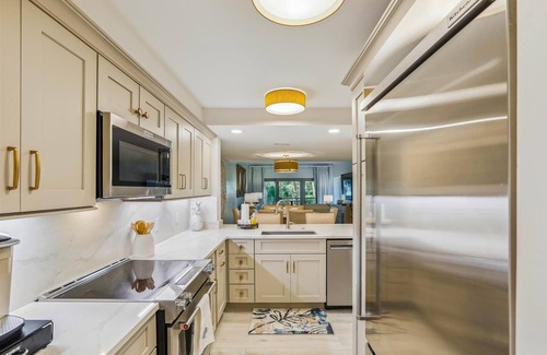 434 Captains Walk Hilton Head Island is an oceanfront 3-bedroom corner villa that has recently undergone a complete custom remodel, featuring brand new cabinets, quartz countertops, appliances, floors, doors, ceilings, paint, and bathrooms with new tile. Professionally decorated with all new furnishings, including mattresses and bedding, the villa exudes a light and airy beach ambiance accentuated by locally curated art. Guests can unwind in front of large smart televisions while enjoying views of the ocean and swaying palms. Conveniently located on the 1st floor, this villa offers quick and easy access to the pool and beach, ensuring a relaxing and enjoyable vacation experience. Every reservation includes up to $1000 in FREE activities, ensuring an unforgettable experience for all guests. Whether you're seeking relaxation or adventure, 434 Captains Walk offers the ultimate vacation getaway.