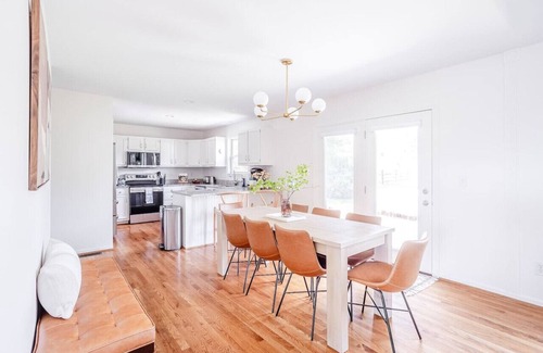 When you enter, you see the cozy living room and a stylish dining room with seating for 8 and open concept kitchen.
