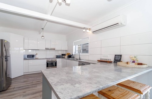 Warm winter base in Hervey Bay! Sleeps 10, close to shops, hospitals, and whale watching. A/C, full kitchen, perfect for workers or family groups.